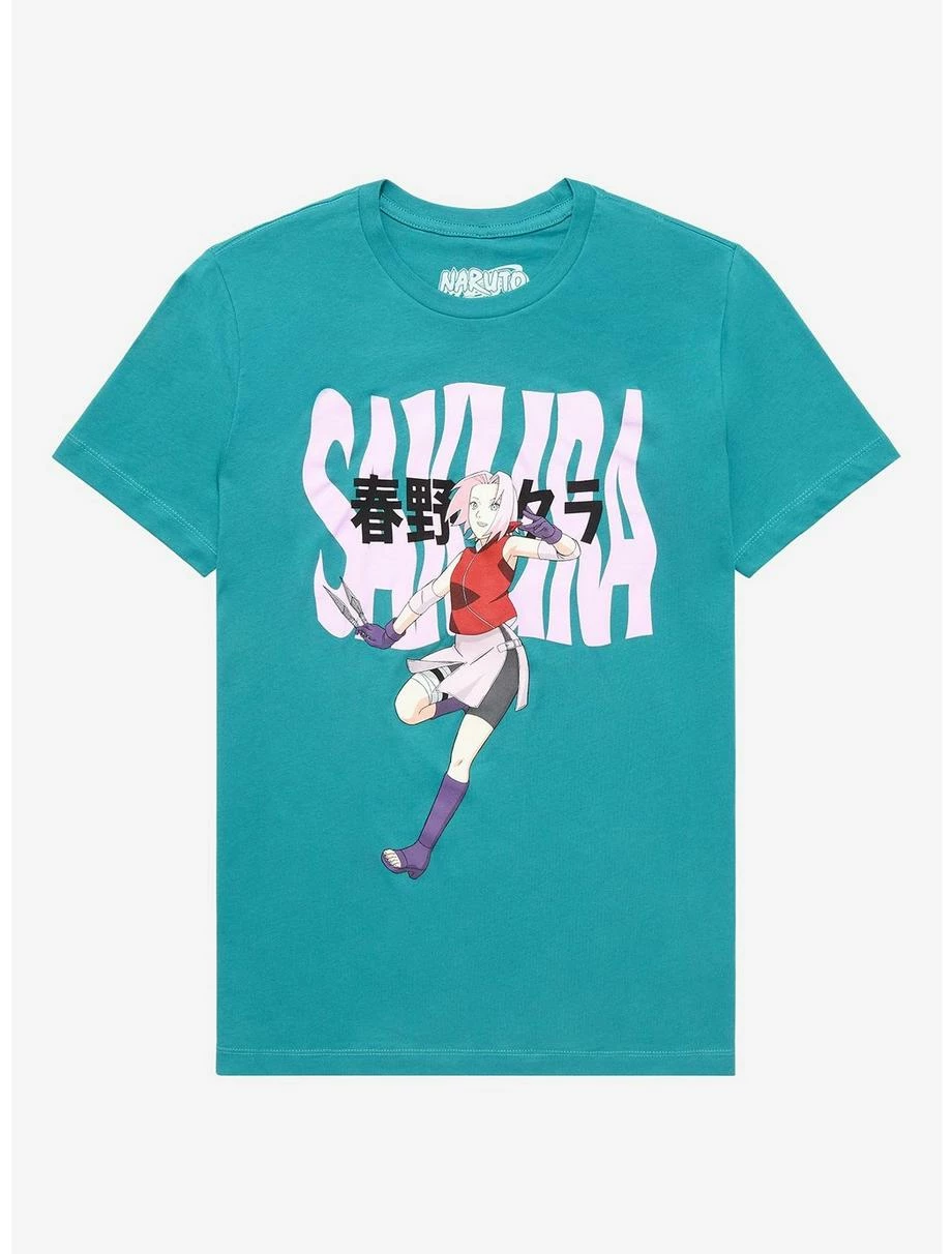 One of the greatest medical ninjas is ready to face any opposing Shinobi in your wardrobe! Featuring a graphic of a kunai-wielding Sakura from the hit anime series Naruto Shippuden, in front of wavy-styled “Sakura” lettering in both Japanese and English, there will be no mistaking the caring ninja on your top.